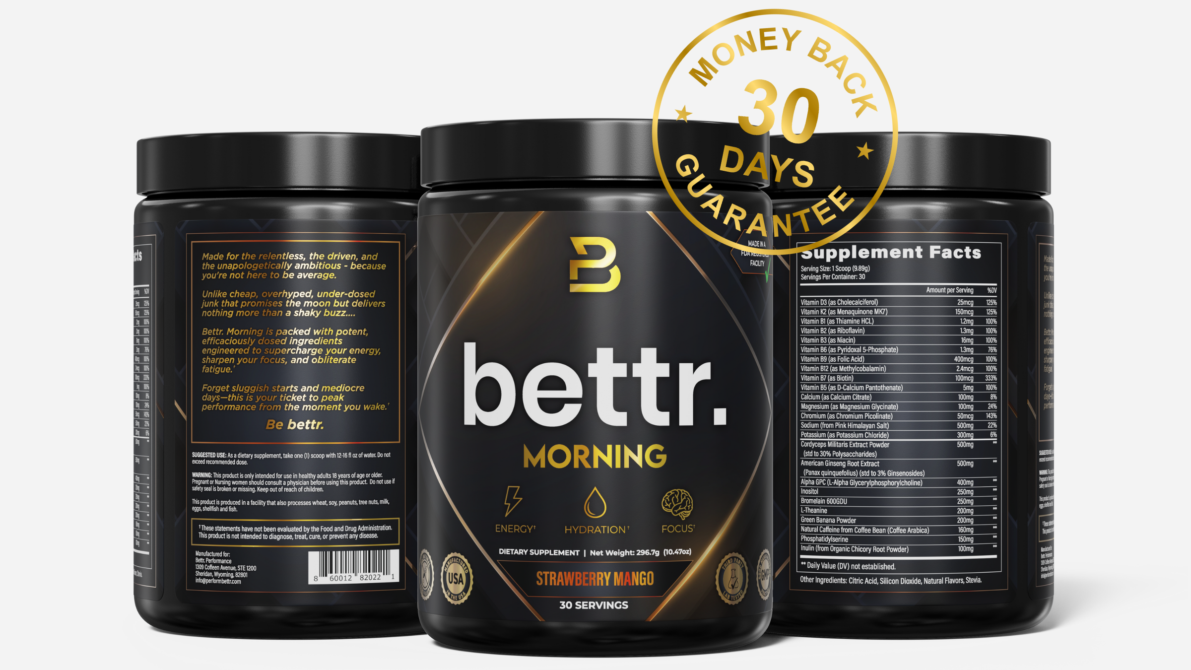 Try Bettr Morning today. If you don’t feel a clear difference in your energy, focus, and productivity within 30 days, we’ll refund you in full.